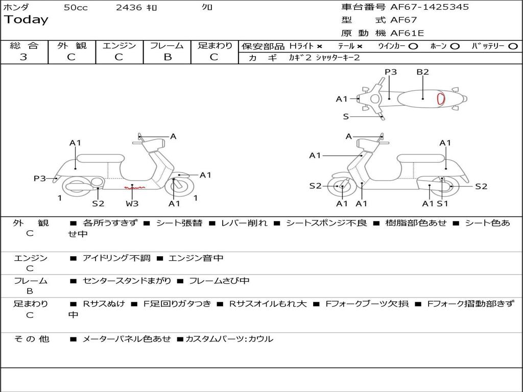 | Номер рамы / VIN | AF67-1425345 |