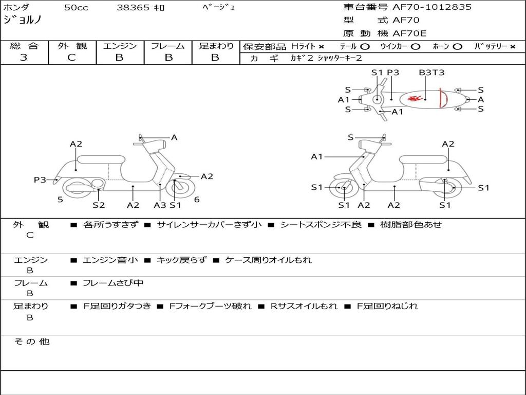 | Номер рамы / VIN | AF70-1012835 |