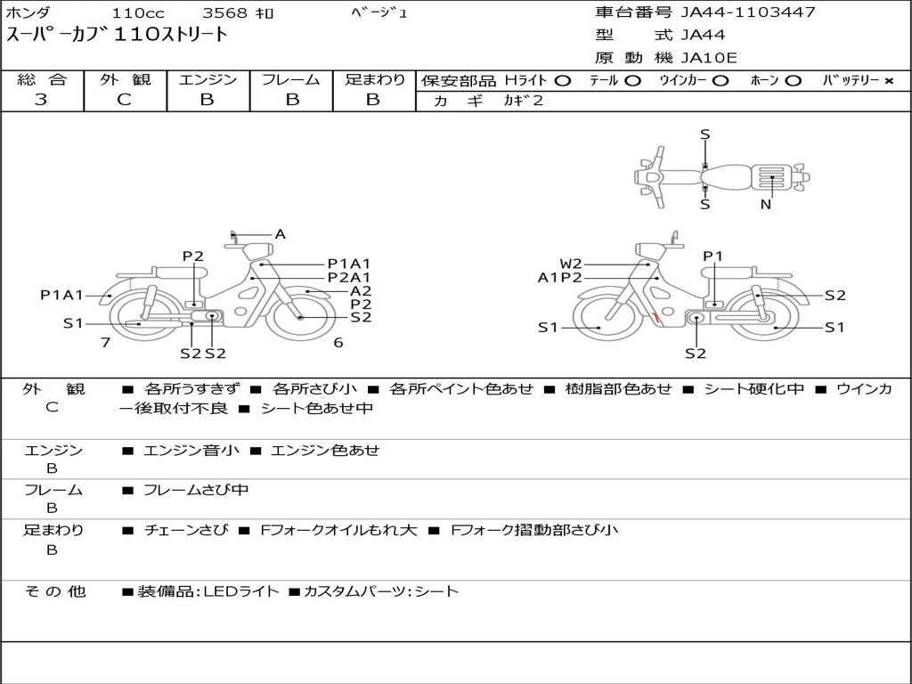| Номер рамы / VIN | JA44-1103447 |