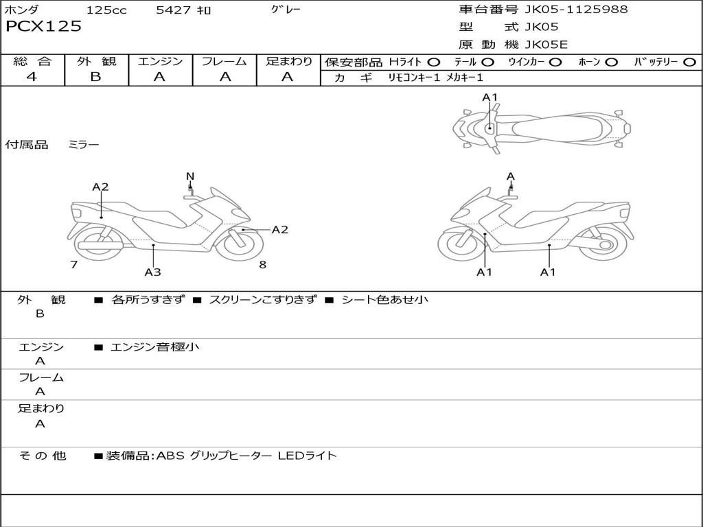 | Номер рамы / VIN | JK05-1125988 |