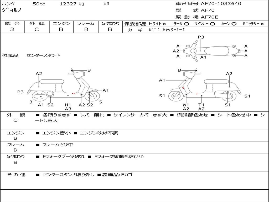 | Номер рамы / VIN | AF70-1033640 |