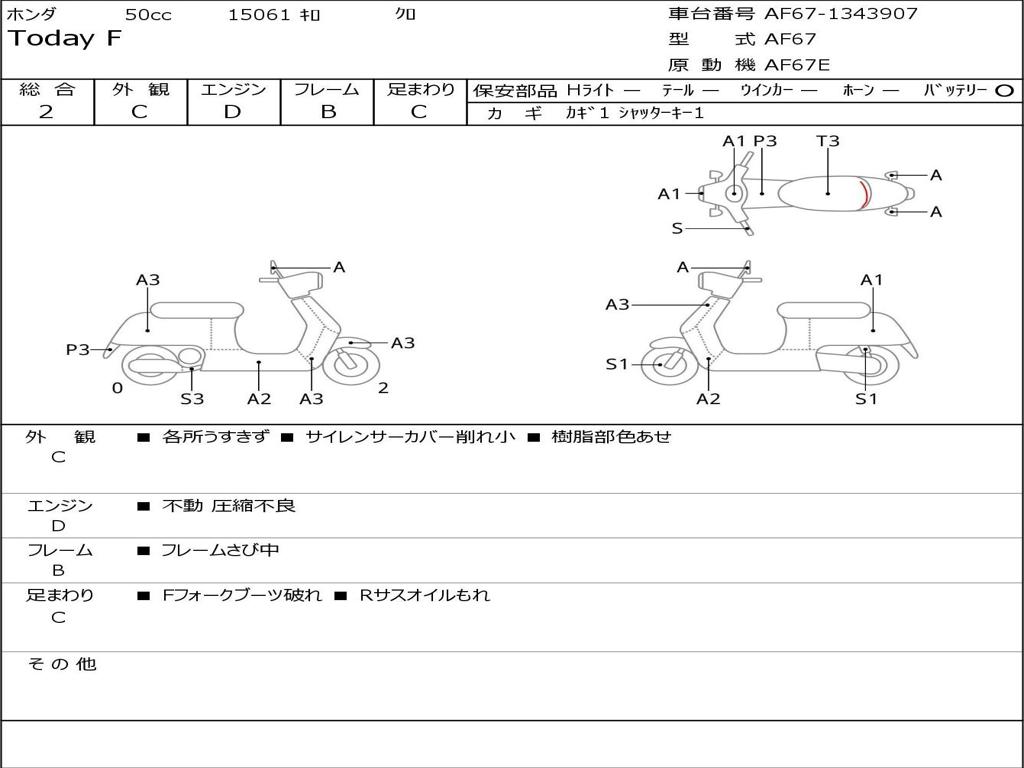 | Номер рамы / VIN | AF67-1343907 |