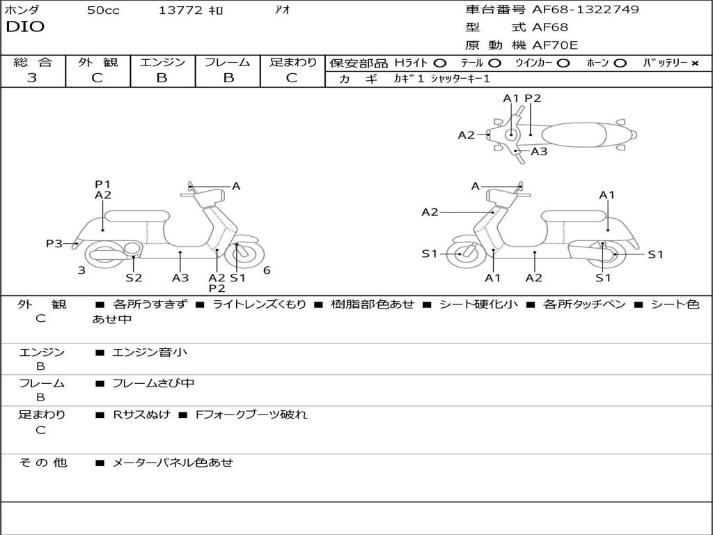 | Номер рамы / VIN | AF68-1322749 |