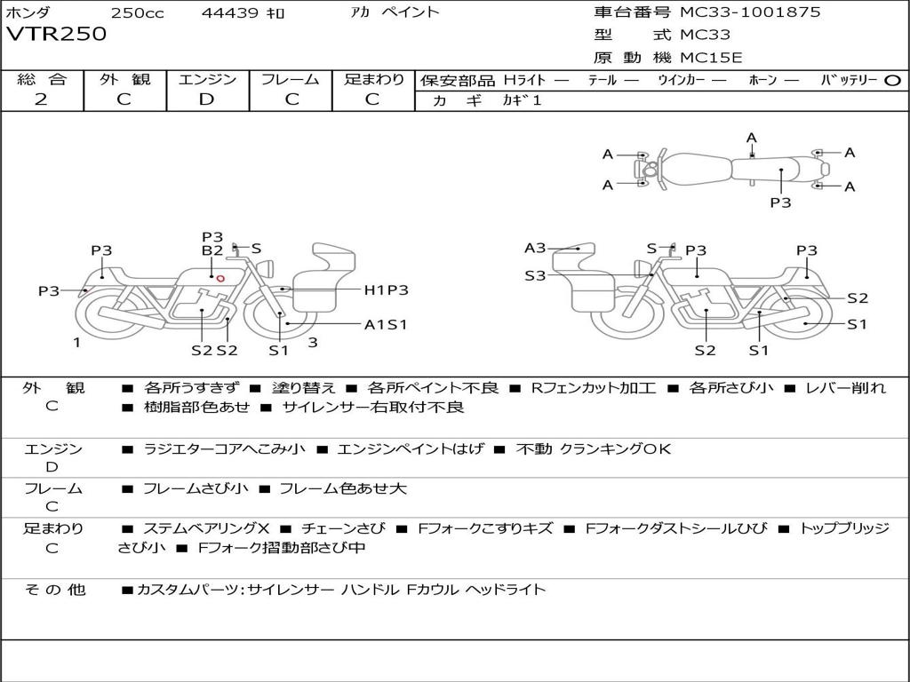 | Номер рамы / VIN | MC33-1001875 |