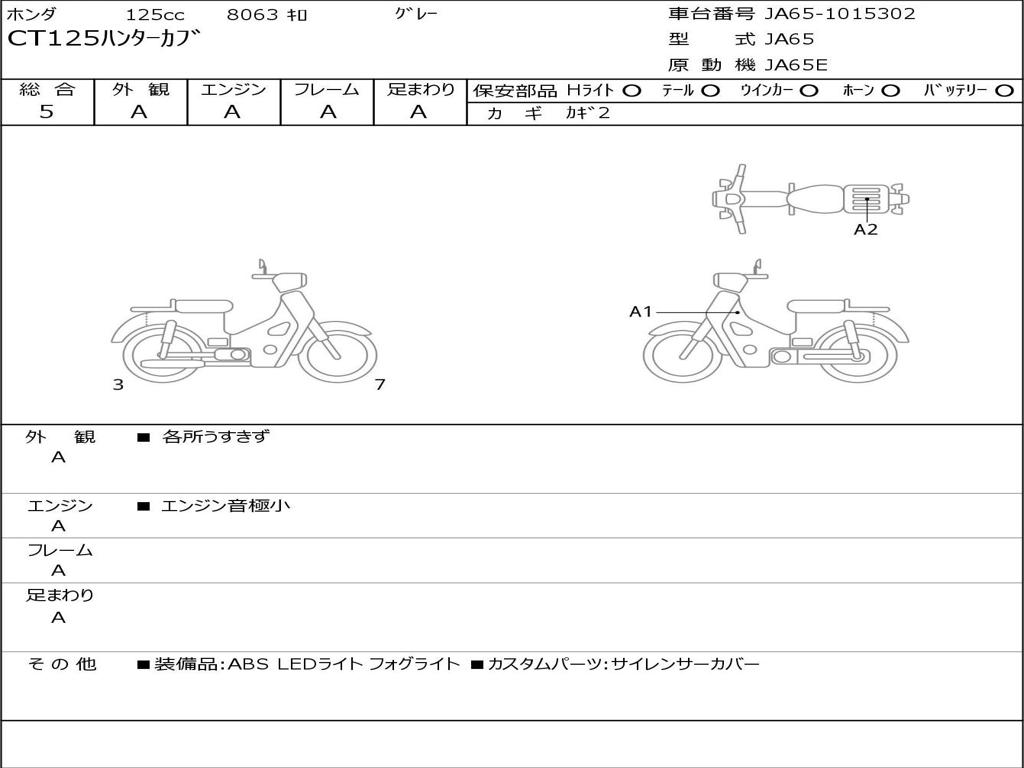 | Номер рамы / VIN | JA65-1015302 |