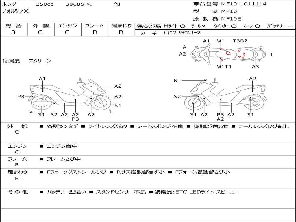 | Номер рамы / VIN | MF10-1011114 |