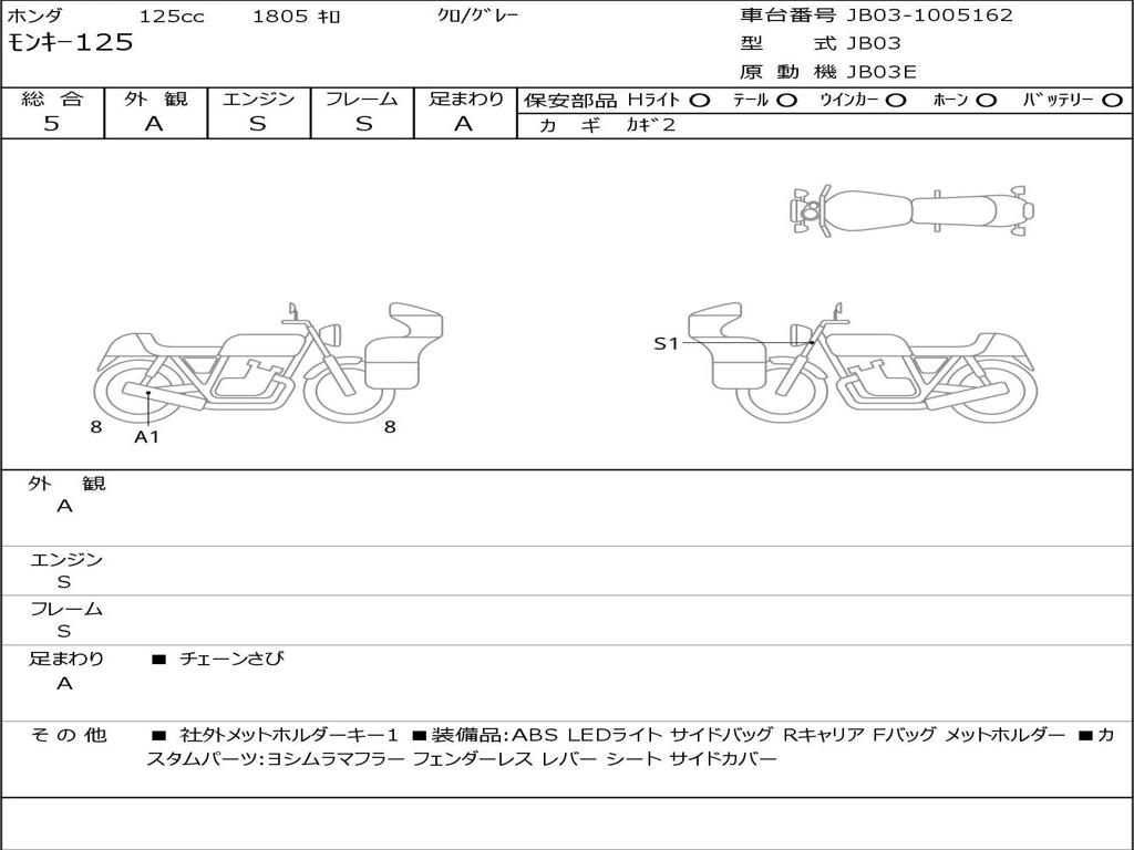 | Номер рамы / VIN | JB03-1005162 |