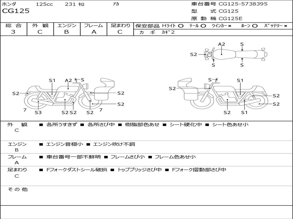| Номер рамы / VIN | CG125-5738395 |