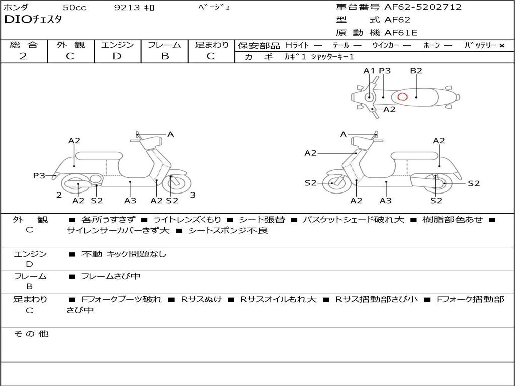 | Номер рамы / VIN | AF62-5202712 |