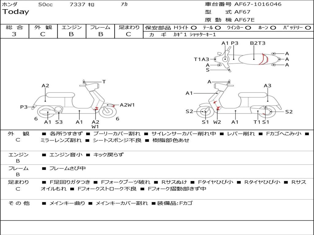 | Номер рамы / VIN | AF67-1016046 |
