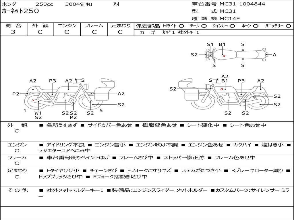 | Номер рамы / VIN | MC31-1004844 |