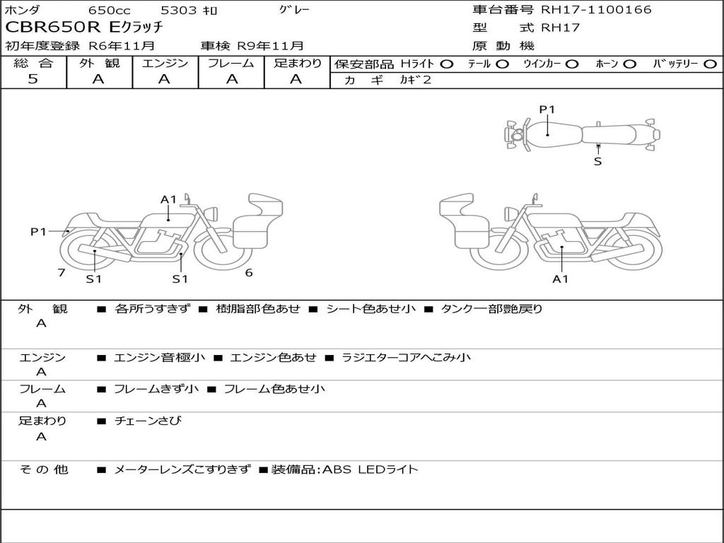| Номер рамы / VIN | RH17-1100166 |