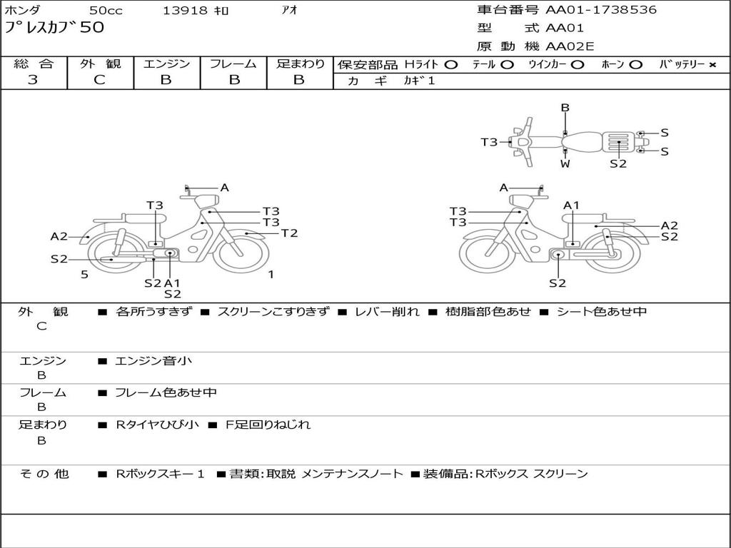 | Номер рамы / VIN | AA01-1738536 |