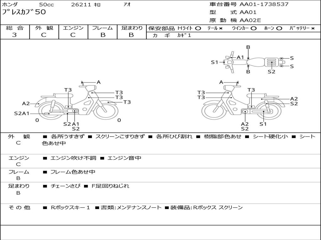 | Номер рамы / VIN | AA01-1738537 |