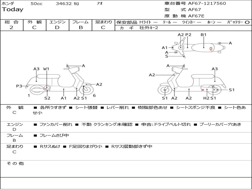 | Номер рамы / VIN | AF67-1217560 |
