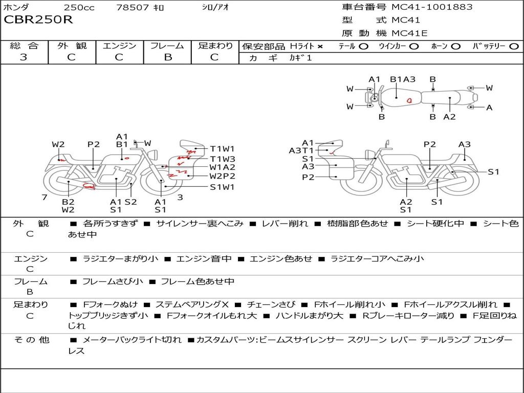 | Номер рамы / VIN | MC41-1001883 |