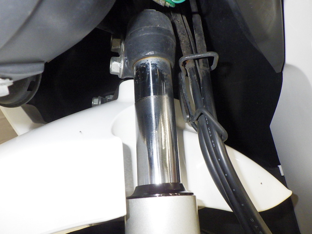 | внешняя часть вилки | следы коррозии, потек масла <много>, уровень шума |