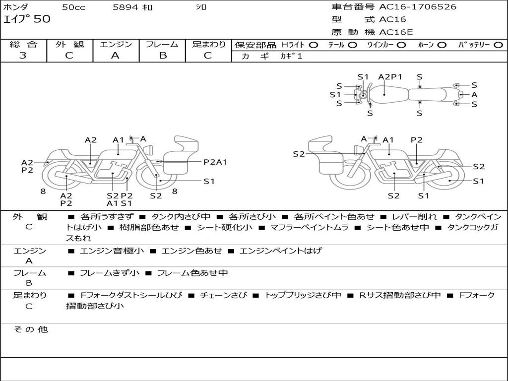 | Номер рамы / VIN | AC16-1706526 |