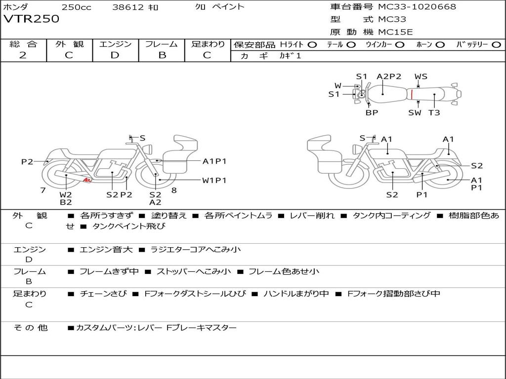 | Номер рамы / VIN | MC33-1020668 |