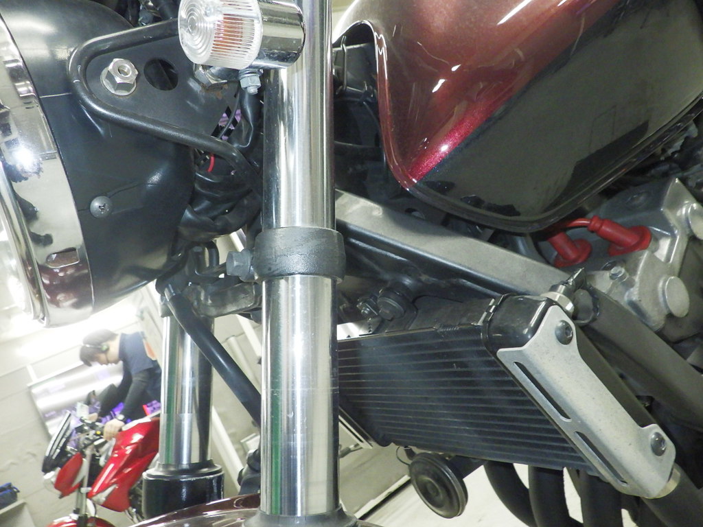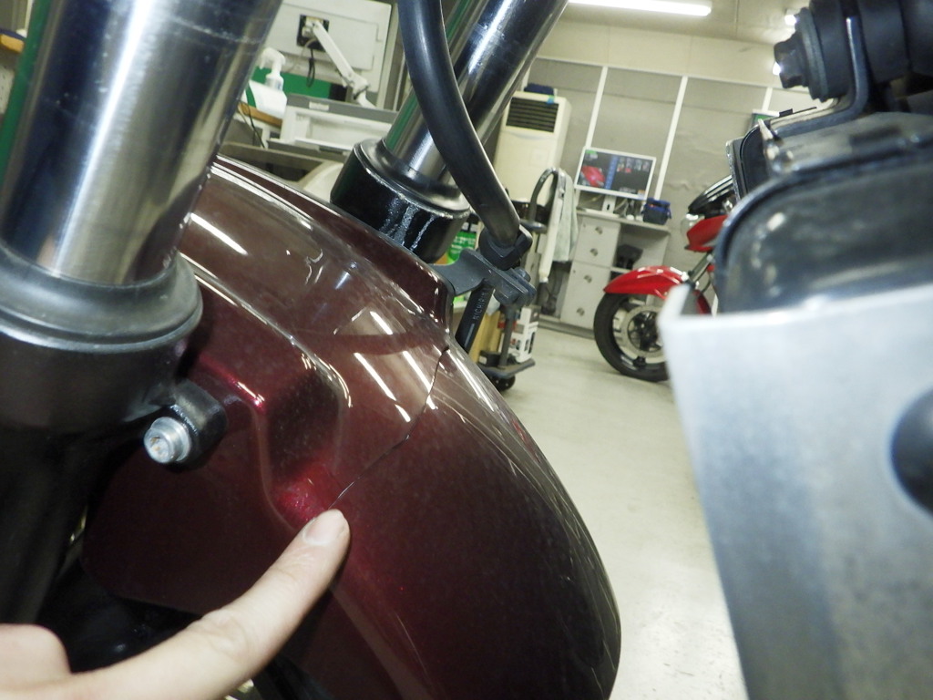 | внешняя часть вилки | неисправен сальник, потек масла <немного>, перекрашено, неравномерность цвета ЛКП |