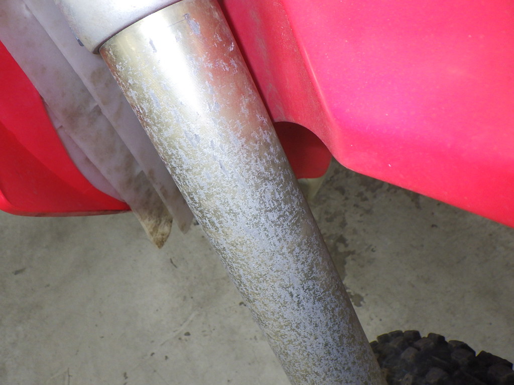 | внешняя часть вилки | следы коррозии <много>, износ(потертость) краски <очень много>, потек масла <много>, трещины <много> |