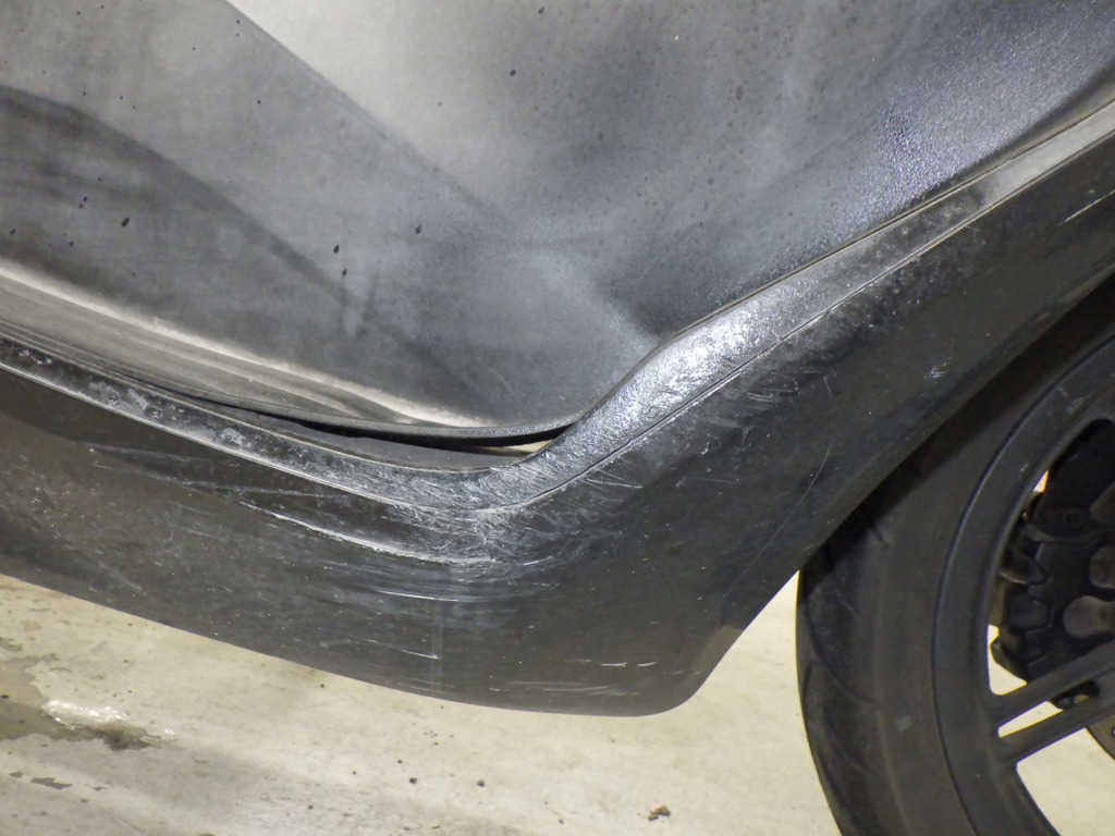 | снизу | царапины <много>, частичная подкраска, трещины <много> |