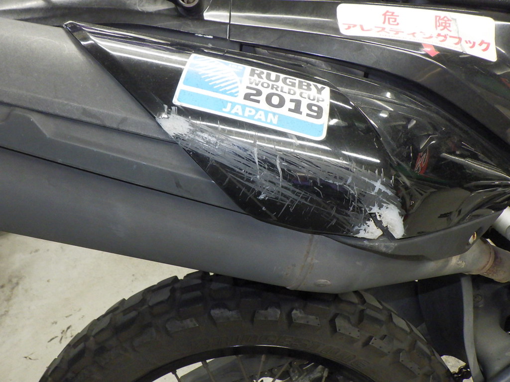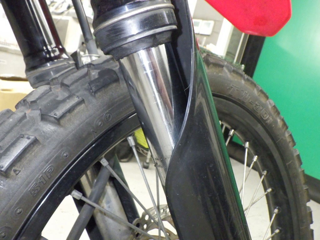 | внешняя часть вилки | царапины <много>, потек масла <много> |