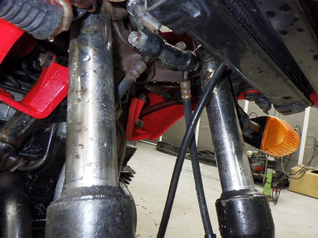 | внешняя часть вилки | следы коррозии <много>, потек масла, перекрашено, неисправность |