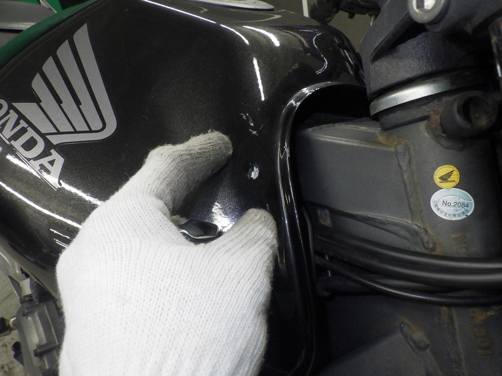 | бензобак | царапины <много>, вмятина, исправлен., перекрашено, неравномерность цвета ЛКП |