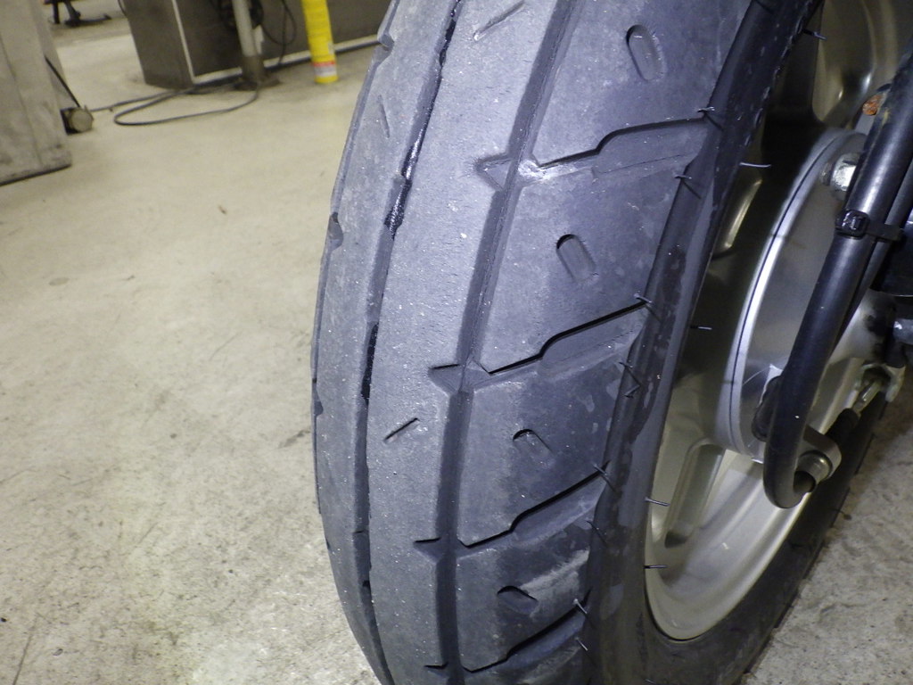 | шина | трещины, требует замены |