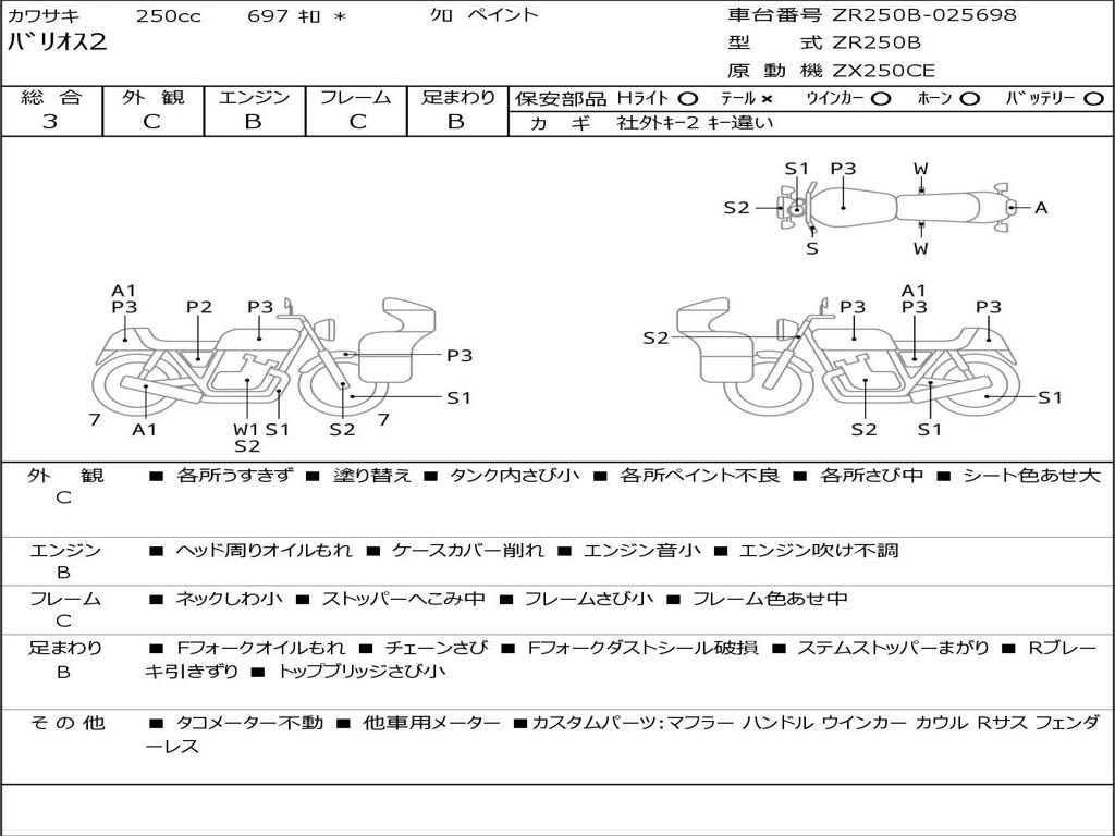 | Номер рамы / VIN | ZR250B-025698 |
