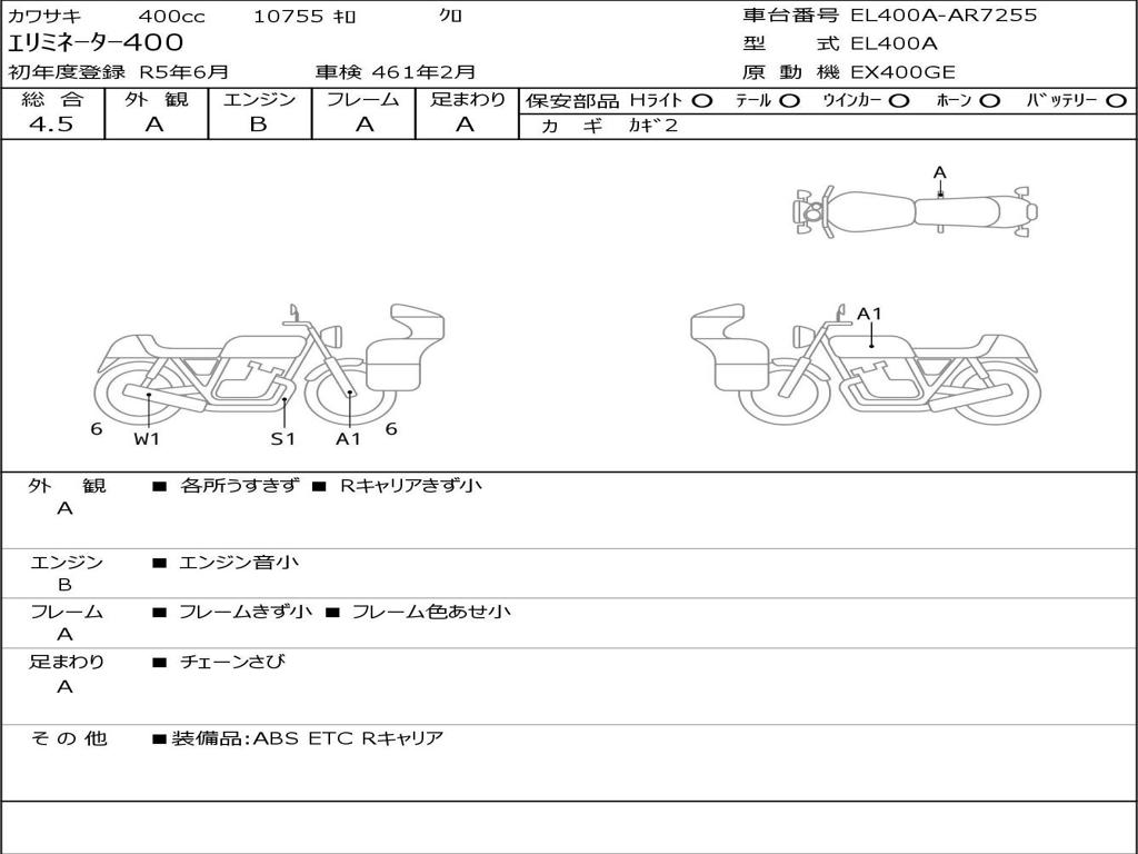 | Номер рамы / VIN | EL400A-AR7255 |