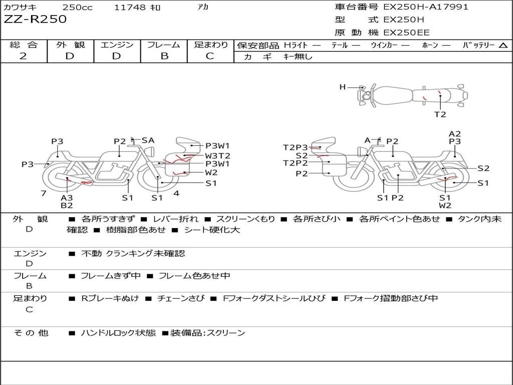| Номер рамы / VIN | EX250H-A17991 |