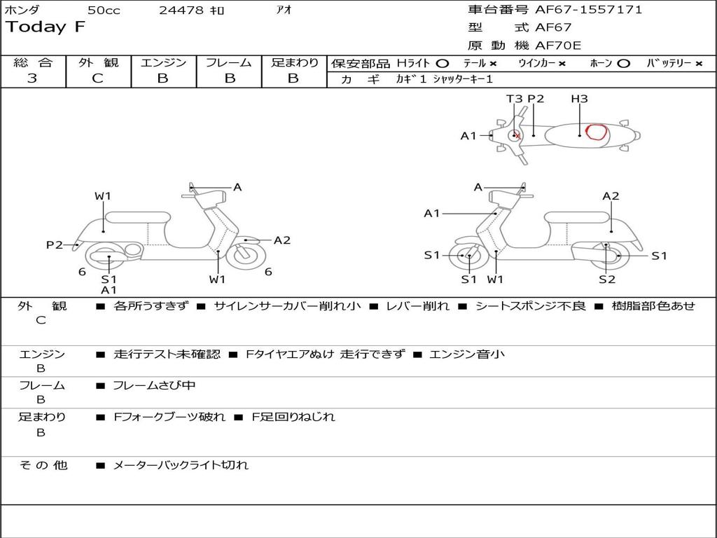 | Номер рамы / VIN | AF67-1557171 |