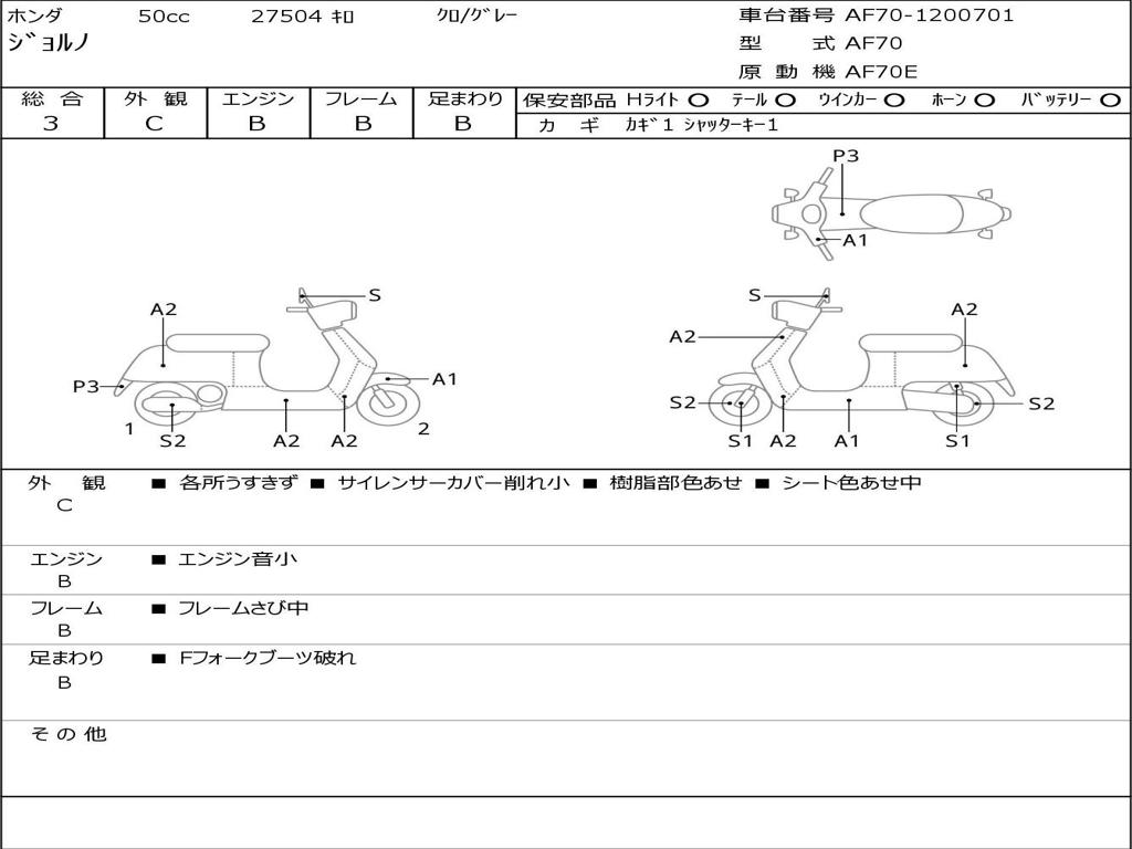 | Номер рамы / VIN | AF70-1200701 |