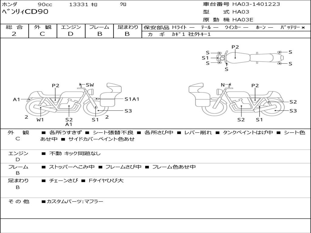 | Номер рамы / VIN | HA03-1401223 |