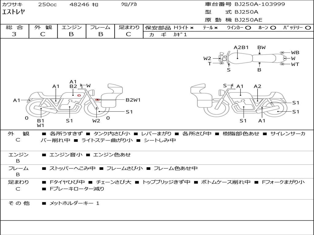 | Номер рамы / VIN | BJ250A-103999 |