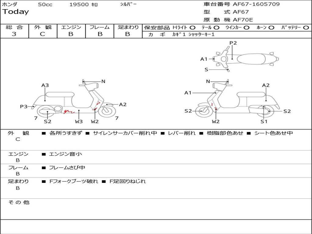 | Номер рамы / VIN | AF67-1605709 |