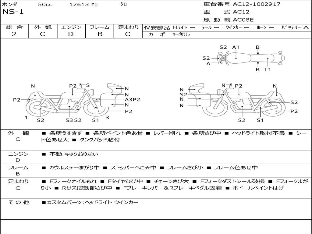 | Номер рамы / VIN | AC12-1002917 |