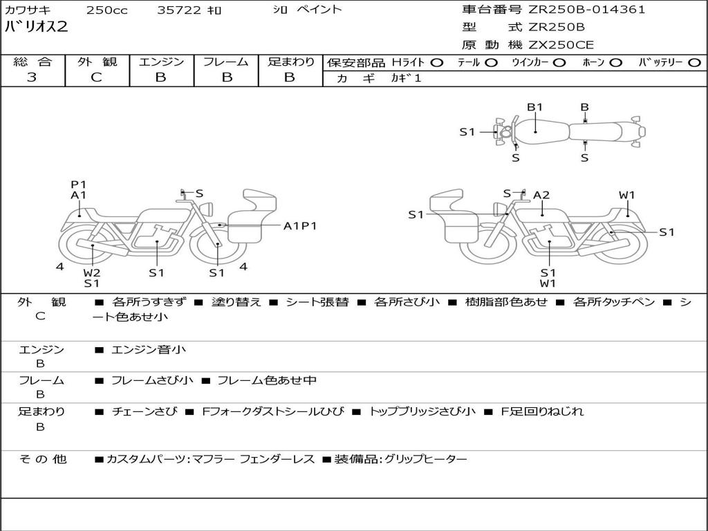 | Номер рамы / VIN | ZR250B-014361 |