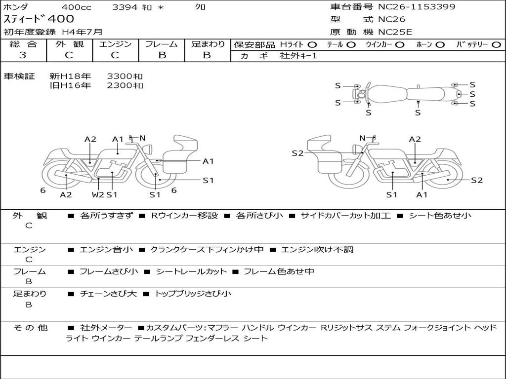 | Номер рамы / VIN | NC26-1153399 |
