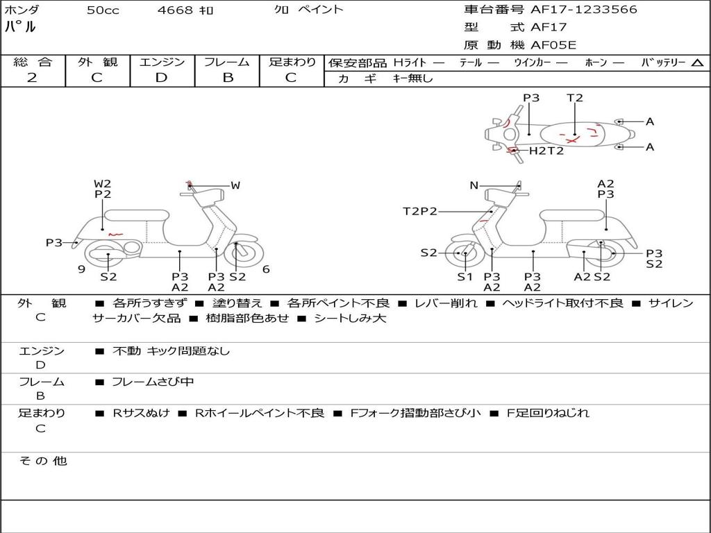 | Номер рамы / VIN | AF17-1233566 |