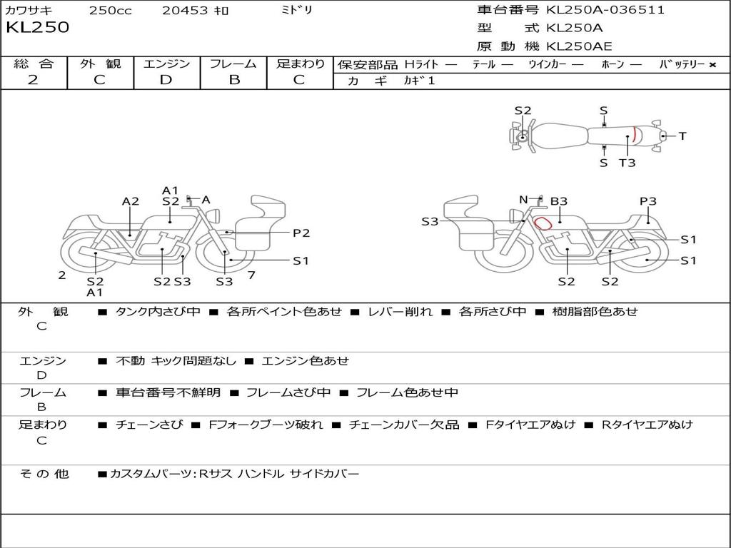 | Номер рамы / VIN | KL250A-036511 |