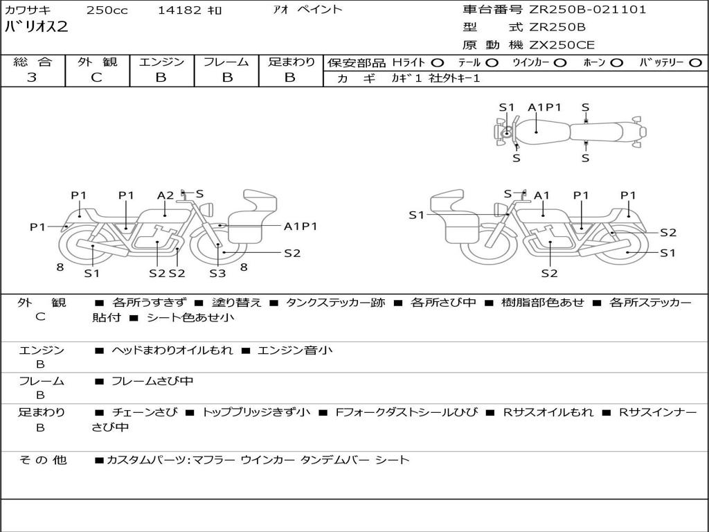 | Номер рамы / VIN | ZR250B-021101 |
