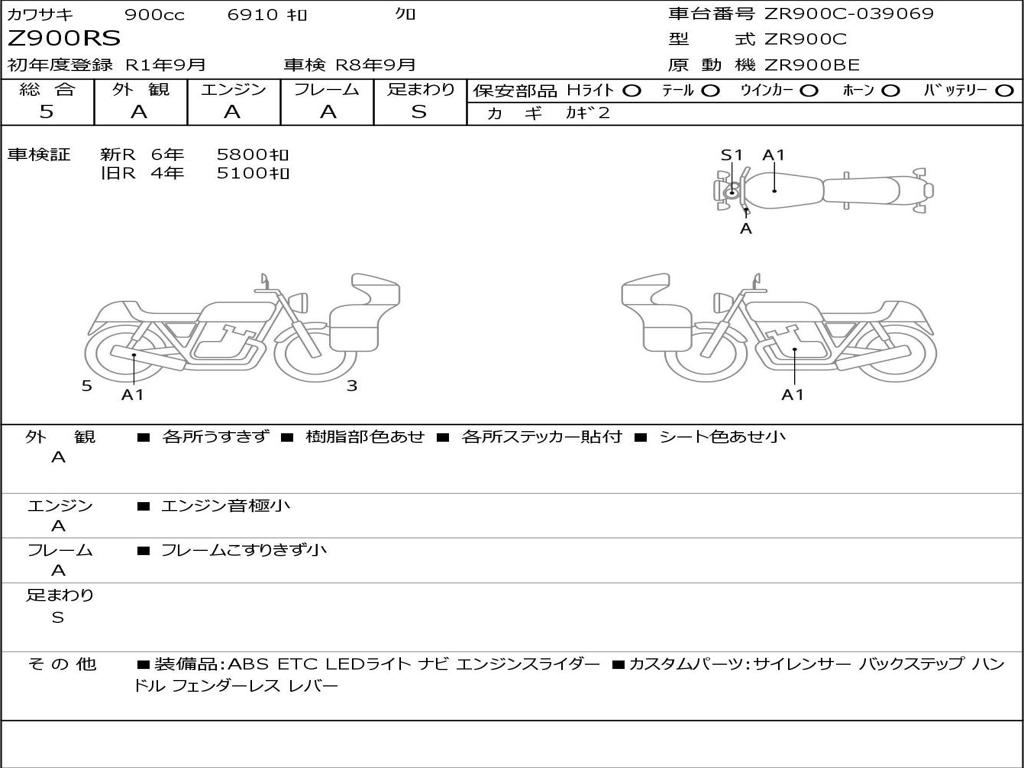 | Номер рамы / VIN | ZR900C-039069 |