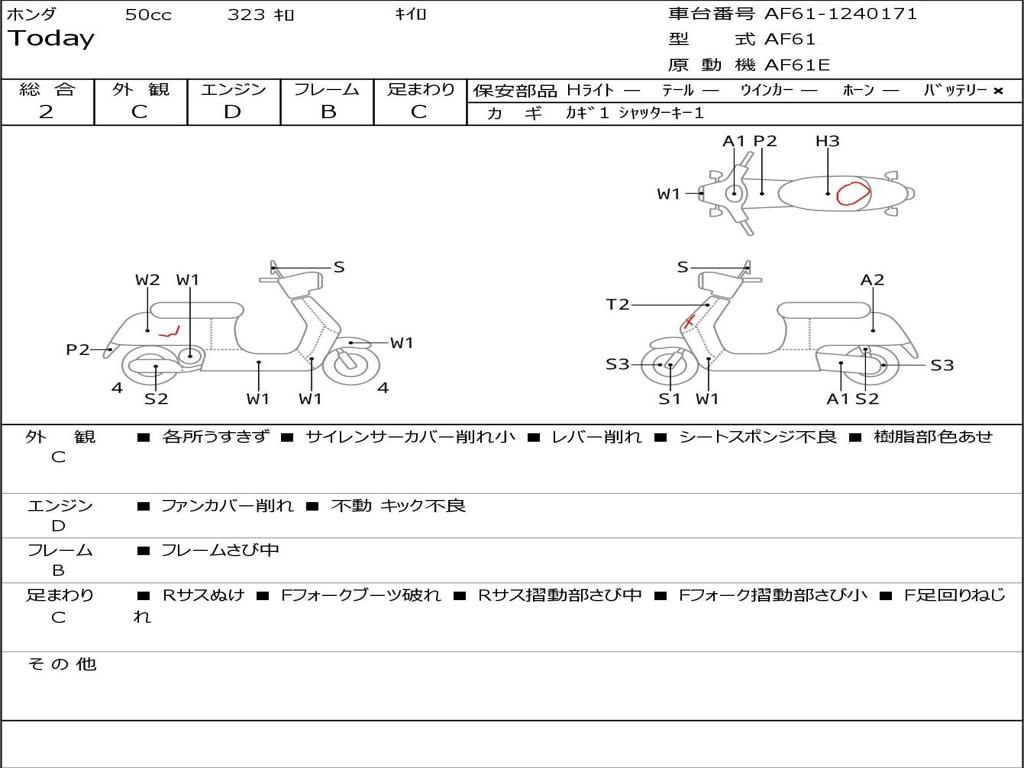 | Номер рамы / VIN | AF61-1240171 |