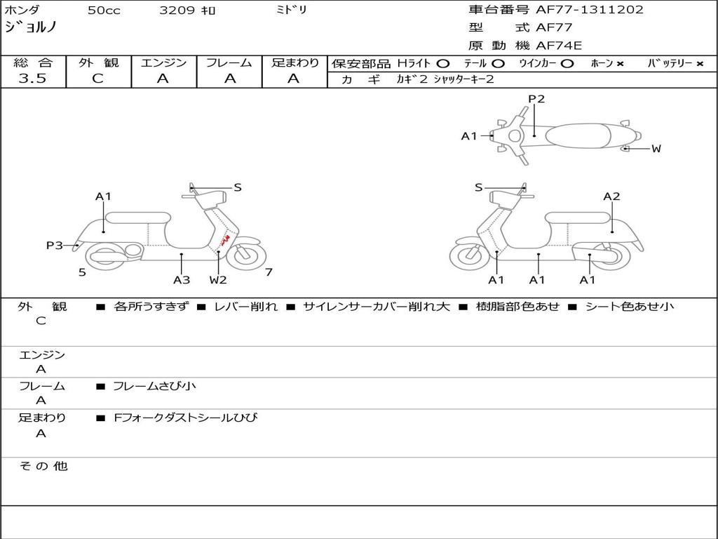 | Номер рамы / VIN | AF77-1311202 |