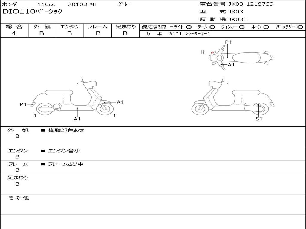 | Номер рамы / VIN | JK03-1218759 |
