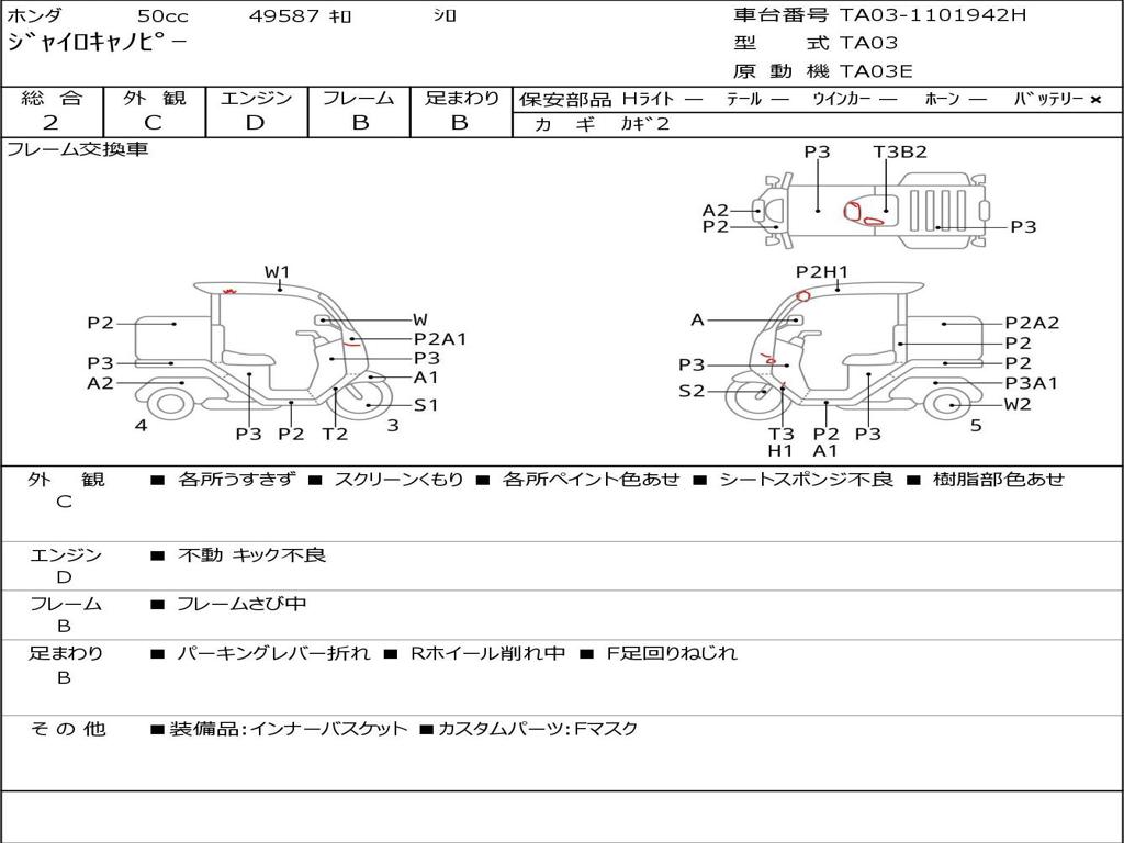 | Номер рамы / VIN | TA03-1101948H |
