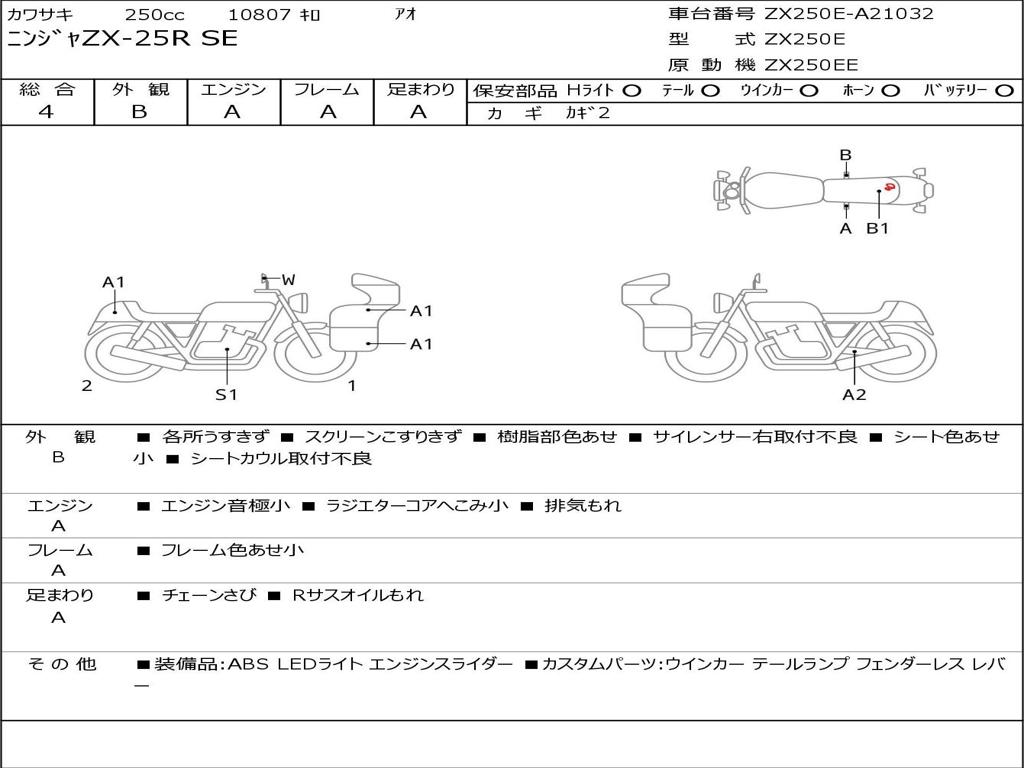 | Номер рамы / VIN | ZX250E-A21032 |